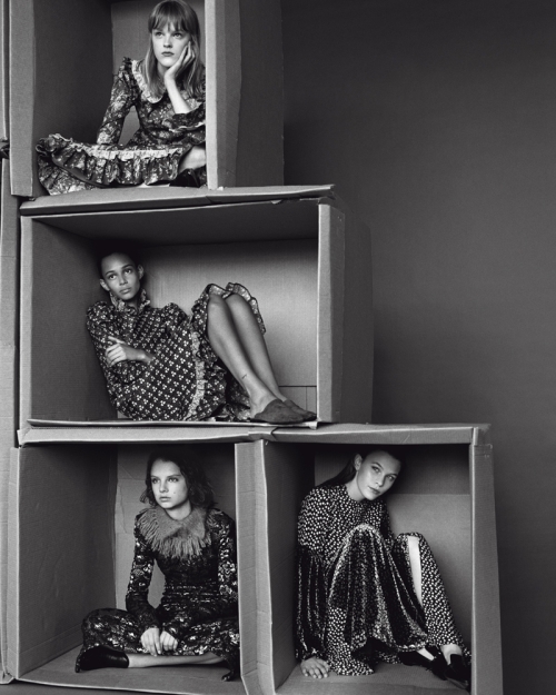 Coline Leclere, Hannah Motler, Giselle Norman and Binx Walton photographed by Alasdair McLellan